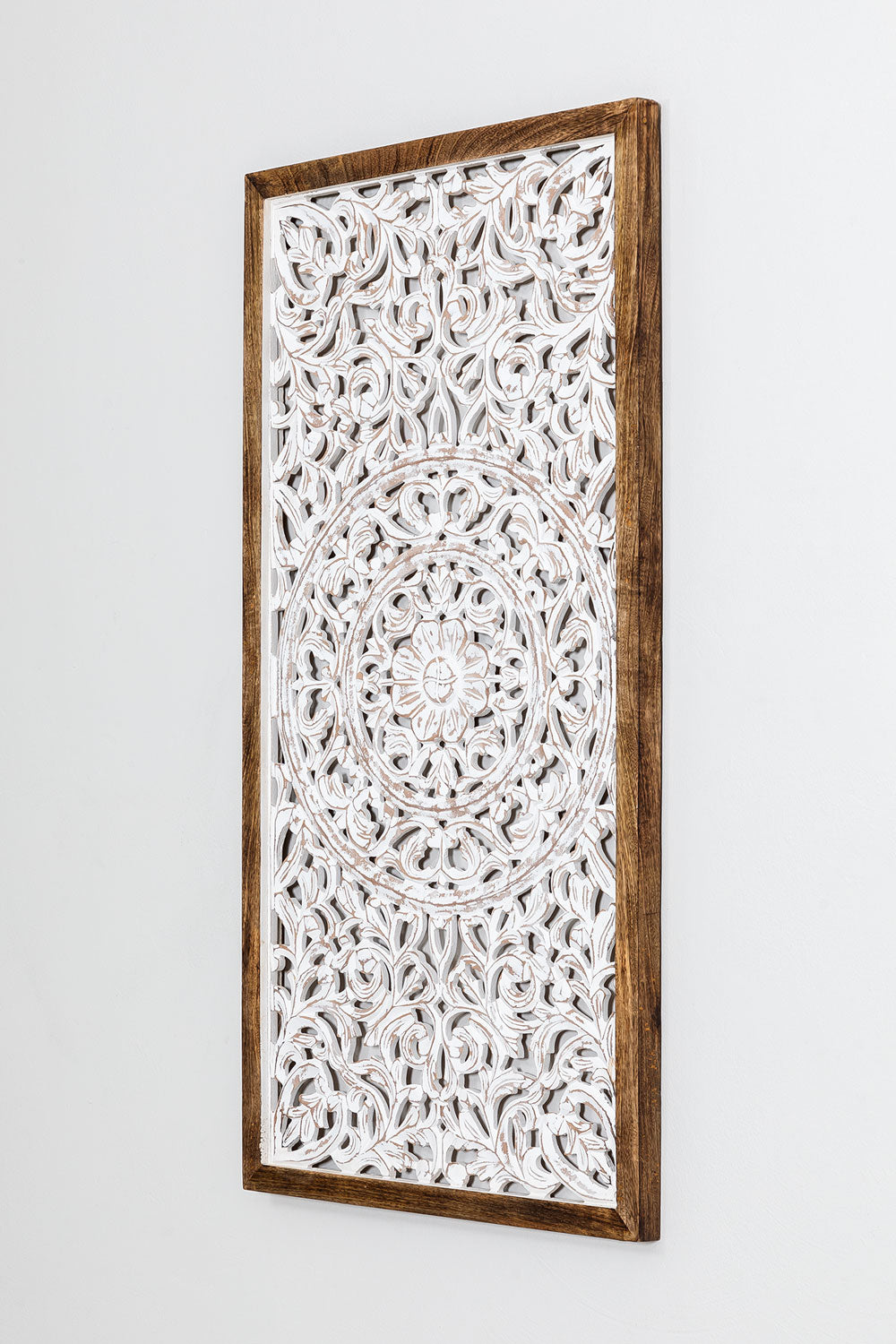 Carved panels are an excellent choice as wall decoration, they bring a fresh air to the room while giving personality. The Asniki Decorative Panel (122x63 cm) is made of MDF , a resistant and robust material. Its mango wood frame reinforces its boho style. We recommend placing it as a headboard in the bedroom .
