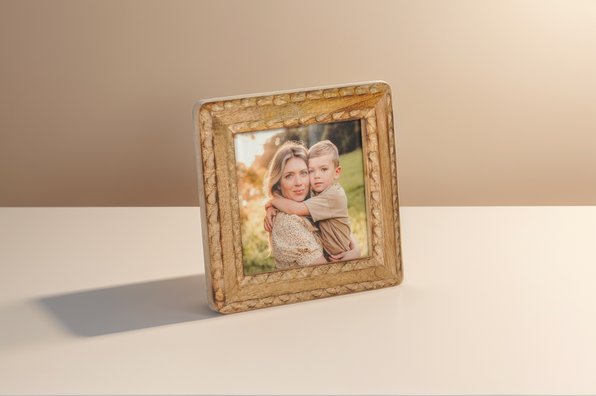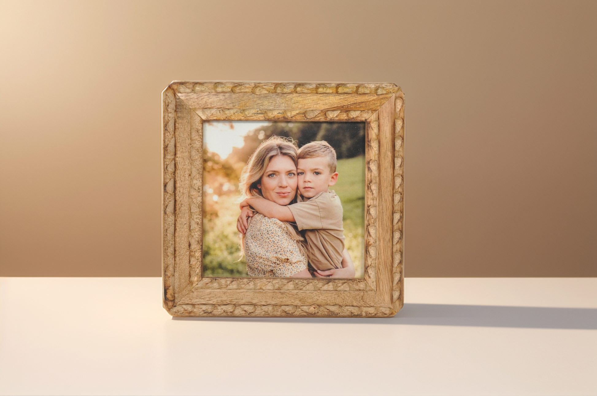 Handcrafted Wooden Carved Photo Frame 12x12 cm